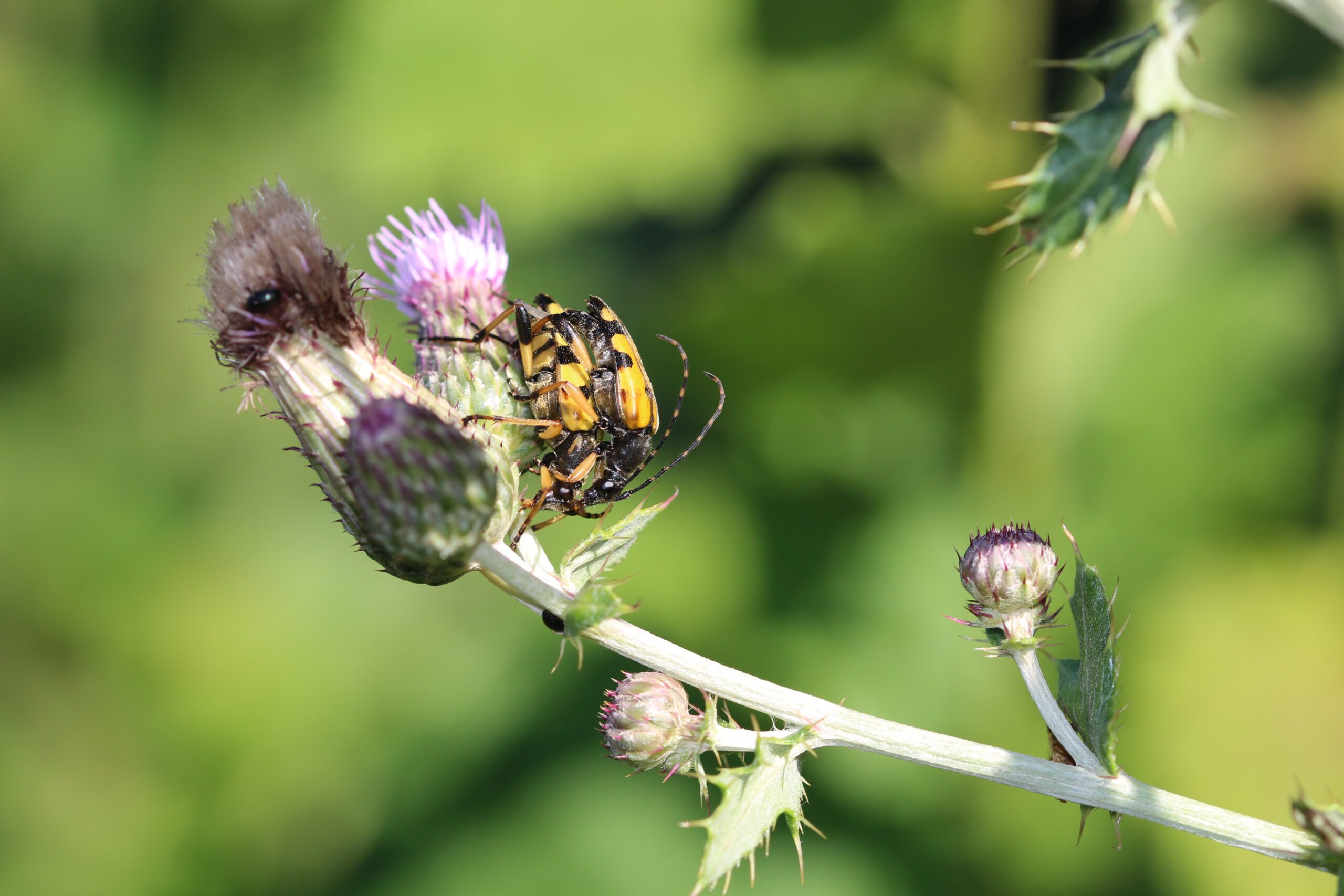 En la imagen vemos a una pareja de Rutpela maculata, un escarabajo de la familia Cerambycidae (conocidos comúnmente como longicornios).